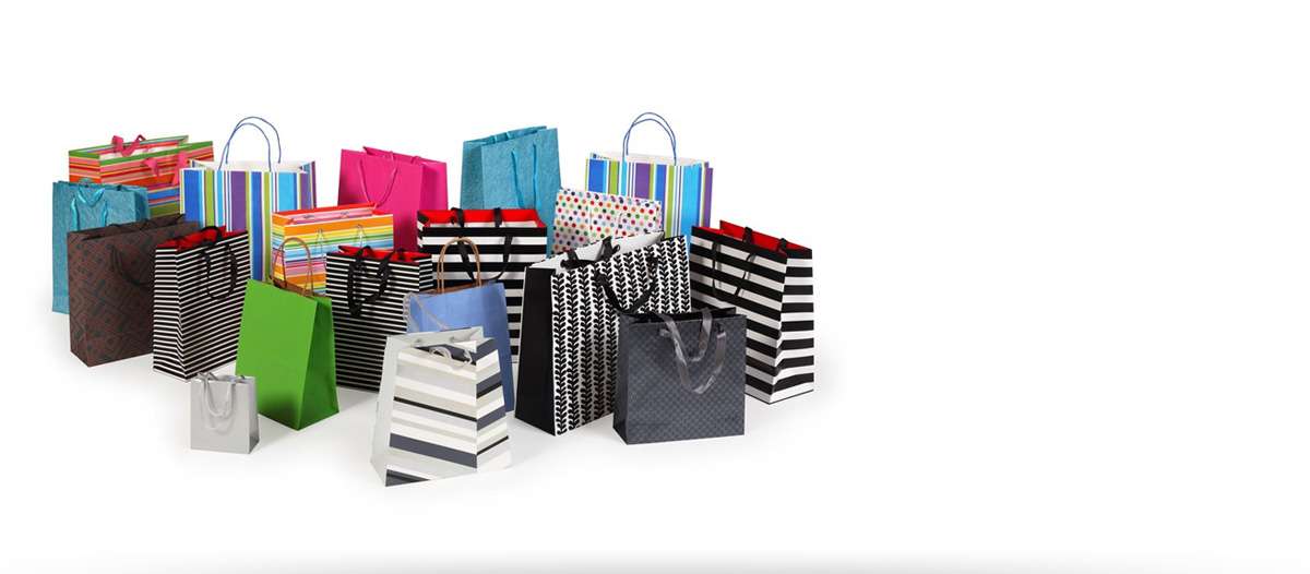 Shopping Bags and Gift Wraps in a rainbow of colors!
